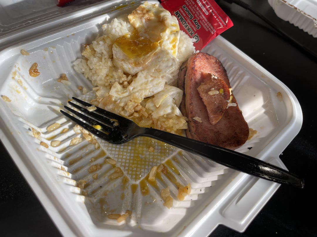 Spam Eggs And Rice. Spam, eggs and rice in Hawaii. Don't knock it til you try it! • /r/food This combination of salty, pan-fried spam, fluffy rice, eggs, and veggies will have you hooked Spam: I used a whole can of pork spam, weighing 12 oz (350 g)